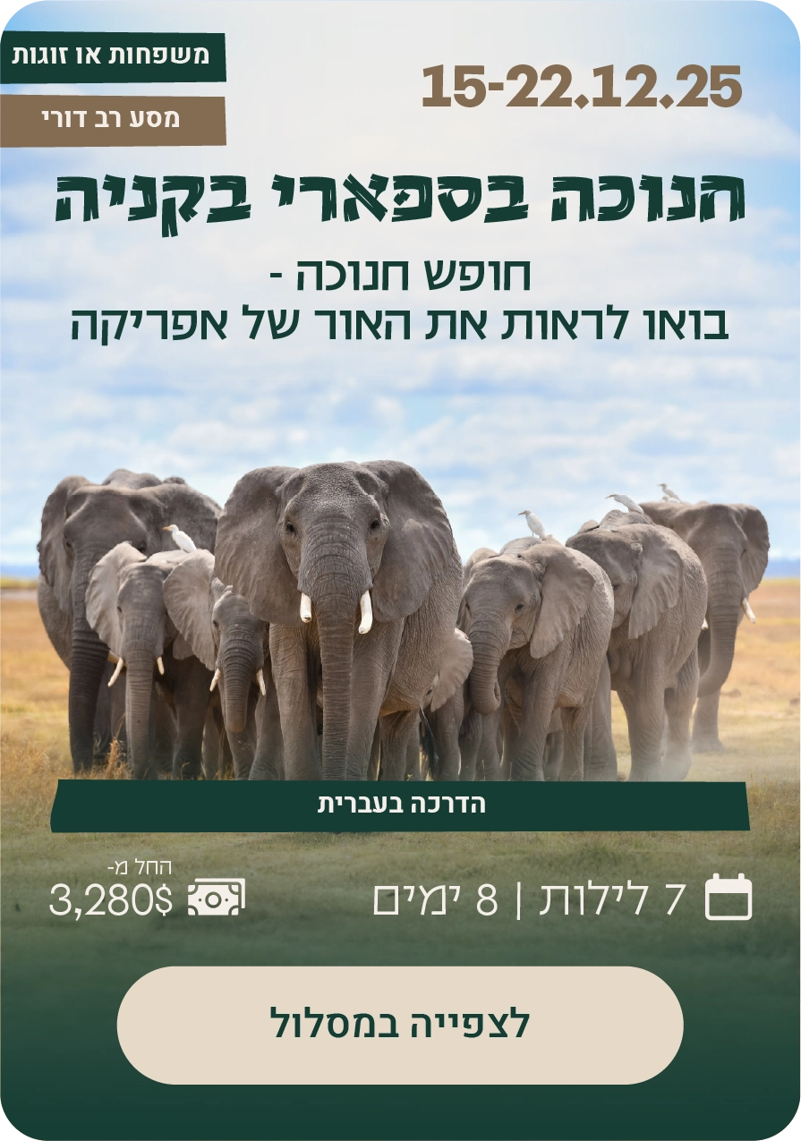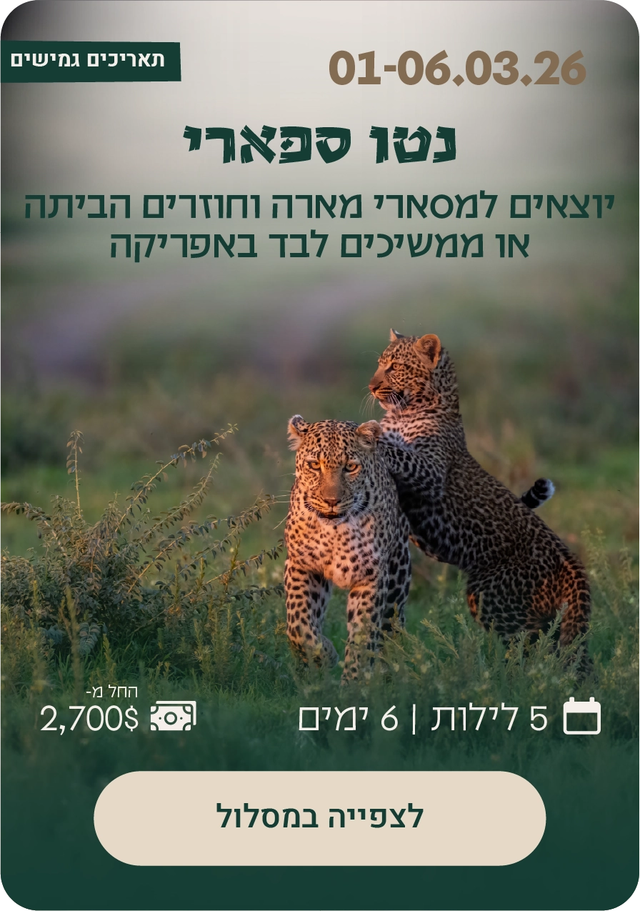 - במסלול של ספארי וחופים לבנים – עלות הטיסה הפנימית כלולה במחיר.
