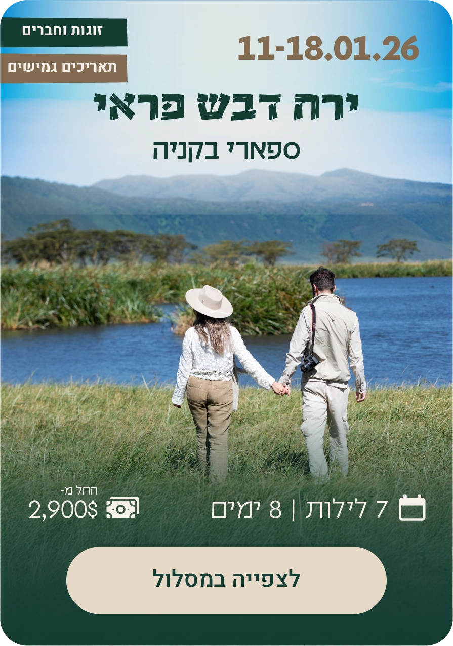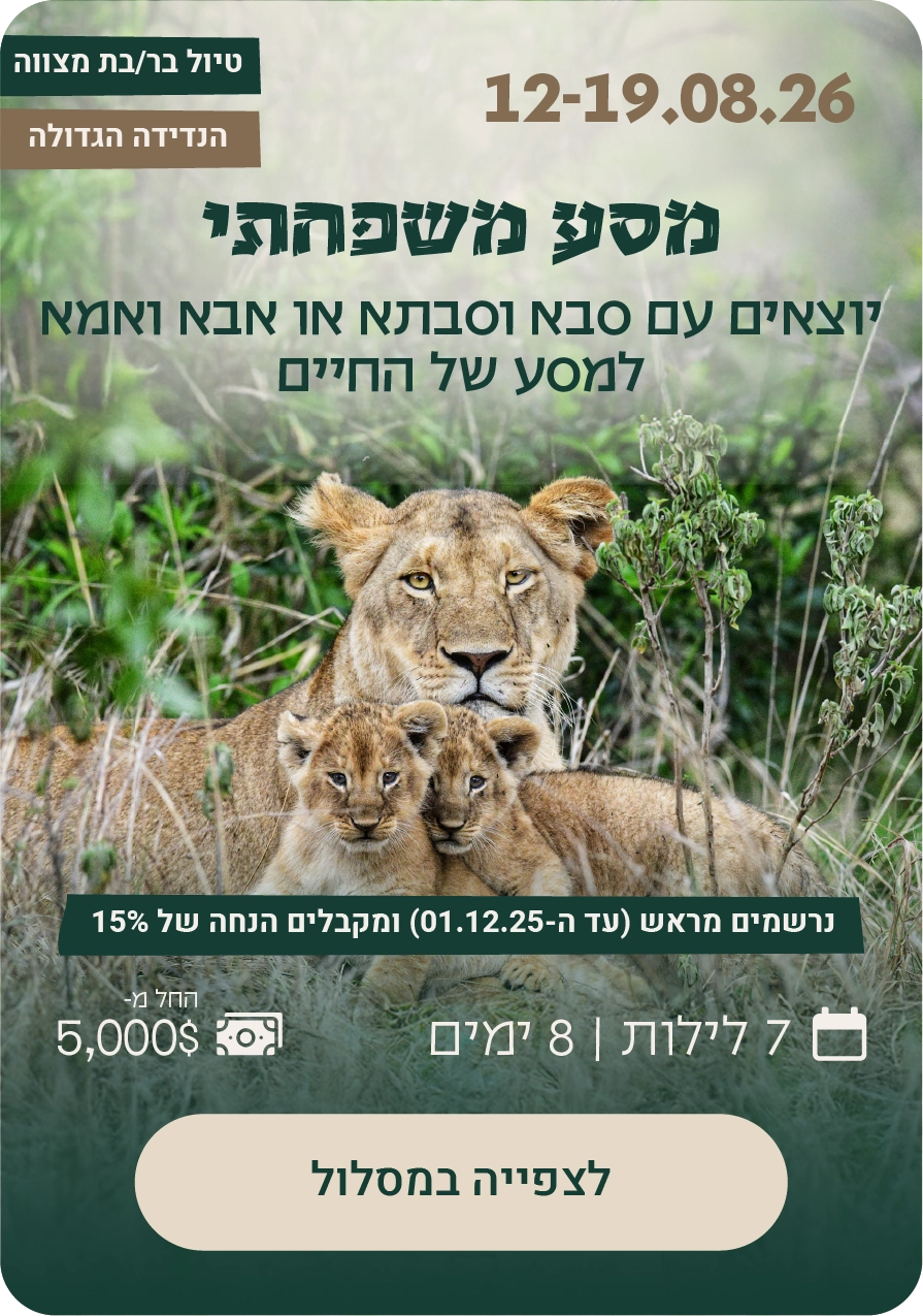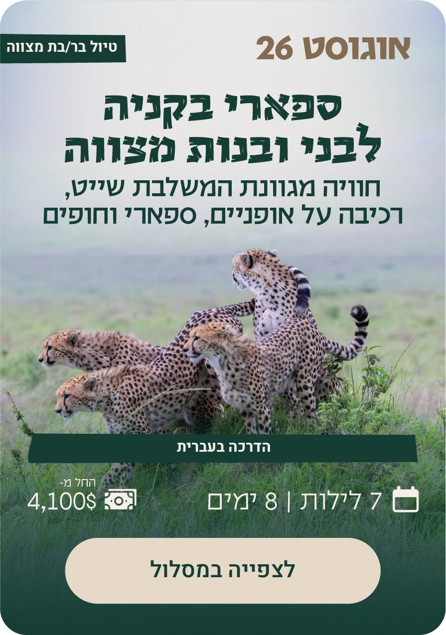 - הדרכה בעברית או באנגלית – אותה המדריכה לאורך כל מסע הספארי